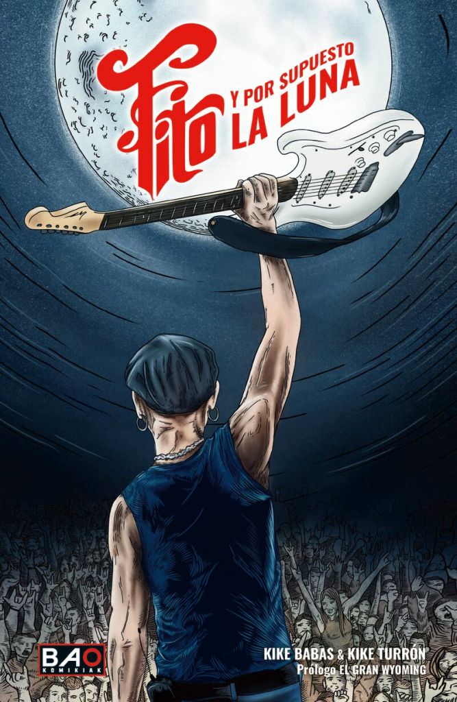 Tras una voraz campaña de lanzamiento, a mitad de la pasada semana llegaba al fin a las librerías la novela gráfica Fito y Por Supuesto La Luna, guionizada por Kike Babas & Kike Turrón, que tuve el placer de degustar en el puente del Pilar, y para la que han contado con la colaboración de una decena de dibujantes e historietistas de reconocido prestigio. Un volumen que ante todo se antojaba como bien fresco, no por lo novedoso, porque este tipo de publicaciones son habituales cuando se trata de grupos yanquis y británicos, pero sin lugar a dudas sí por lo infrecuente si hablamos de nuestra querida escena doméstica, donde sí ha podido haber conexiones con el cómic pero sin duda no con la enjundia y el nivel de producción que tiene el caso que nos ocupa. Decidí sumergirme en su lectura y contemplación de manera contemporizada para que me durara algo más ya que pese a sus más de 220 páginas a todo color el resultado es de lo más gratificante y si te descuidas te lo meriendas en una sentada. Y quizá sea ese uno de los principales valores que tiene el libro, que pese a que la idea ‘se vende sola’ (como se suele decir) todos los implicados se han alejado de la complacencia o el exceso de confianza y han arrimado el hombro para que el resultado sea prácticamente impecable y sobresaliente. Desde el pulcro guion de los Kikes, siguiendo por el fantástico acabado de Bao Bilbao Ediciones (algo habitual en la editorial vasca) a través de su sello Bao Komikiak, pasando por el trabajo de todos los dibujantes que, pese a la variedad, consiguen una cierta homogeneidad a la hora de presentar cada uno de los veintiún capítulos, como si todos hubieran utilizado el mismo ‘filtro’ si nos llevamos el símil al mundo del cine. Y la propia biografía de Fito, claro, el pequeño gran héroe de nuestro rock. El chico de barrio que pudo salir de ‘tras la barra’ y hacernos volar con sus canciones.