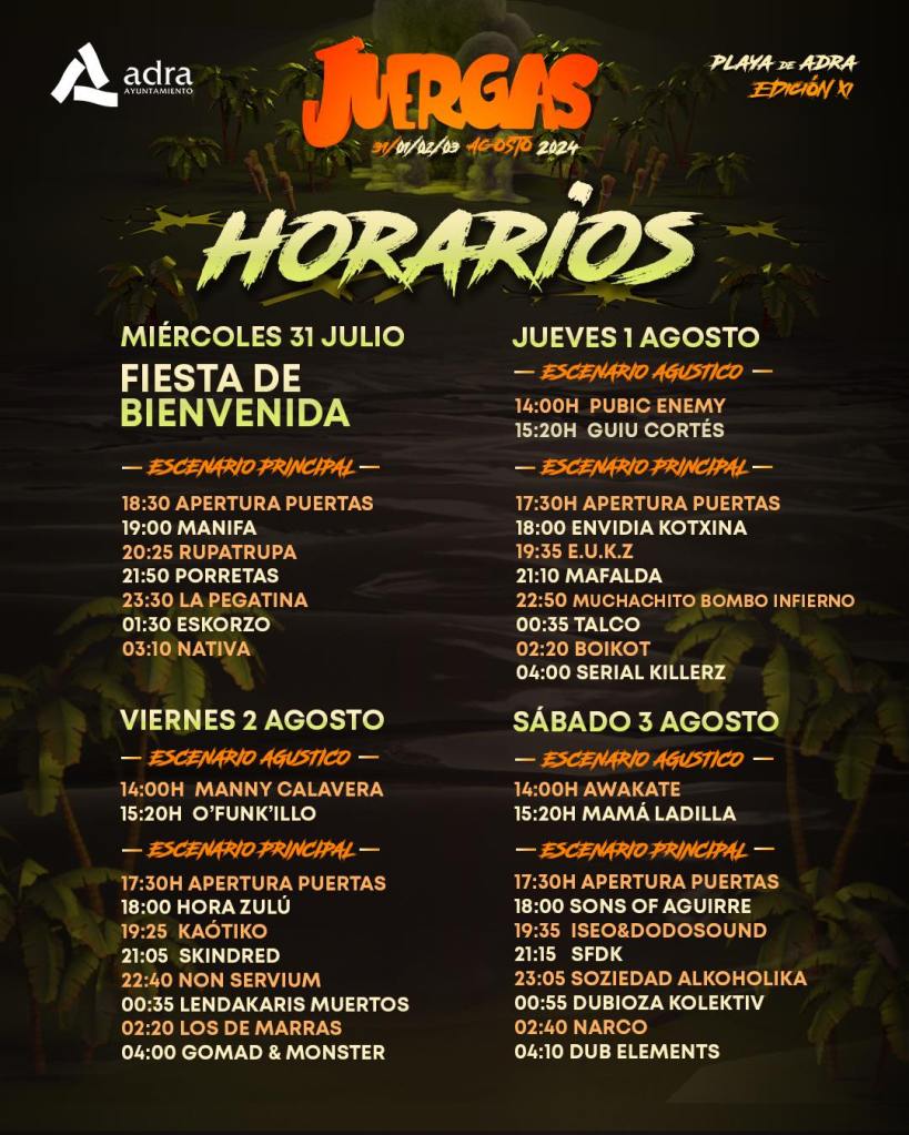 Horarios XI The Juergas Rock Festival 2024, del 31 de julio al 3 de agosto