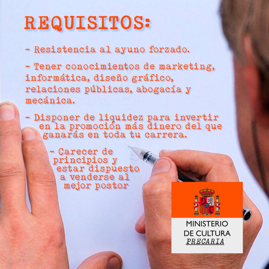 Da-Cat convoca oposiciones para artistas precarios: Las tareas que tendrán que realizar los artistas serán alimentar el alma de la ciudadanía, fomentar la reflexión, el pensamiento crítico y amenizar las plazas y calles de las principales ciudades turísticas del país. Tendrán preferencia aquellos artistas que hayan entrado en bancarrota más de dos veces en su ineficaz carrera por ser artista. Si te dedicas a perder dinero con la música, pintura, fotografía o escultura, no te lo pienses más, prepárate estas oposiciones y… ¡SÁLVATE! (Los poetas no podrán presentarse por no ser considerados artistas económicamente viables para el estado)