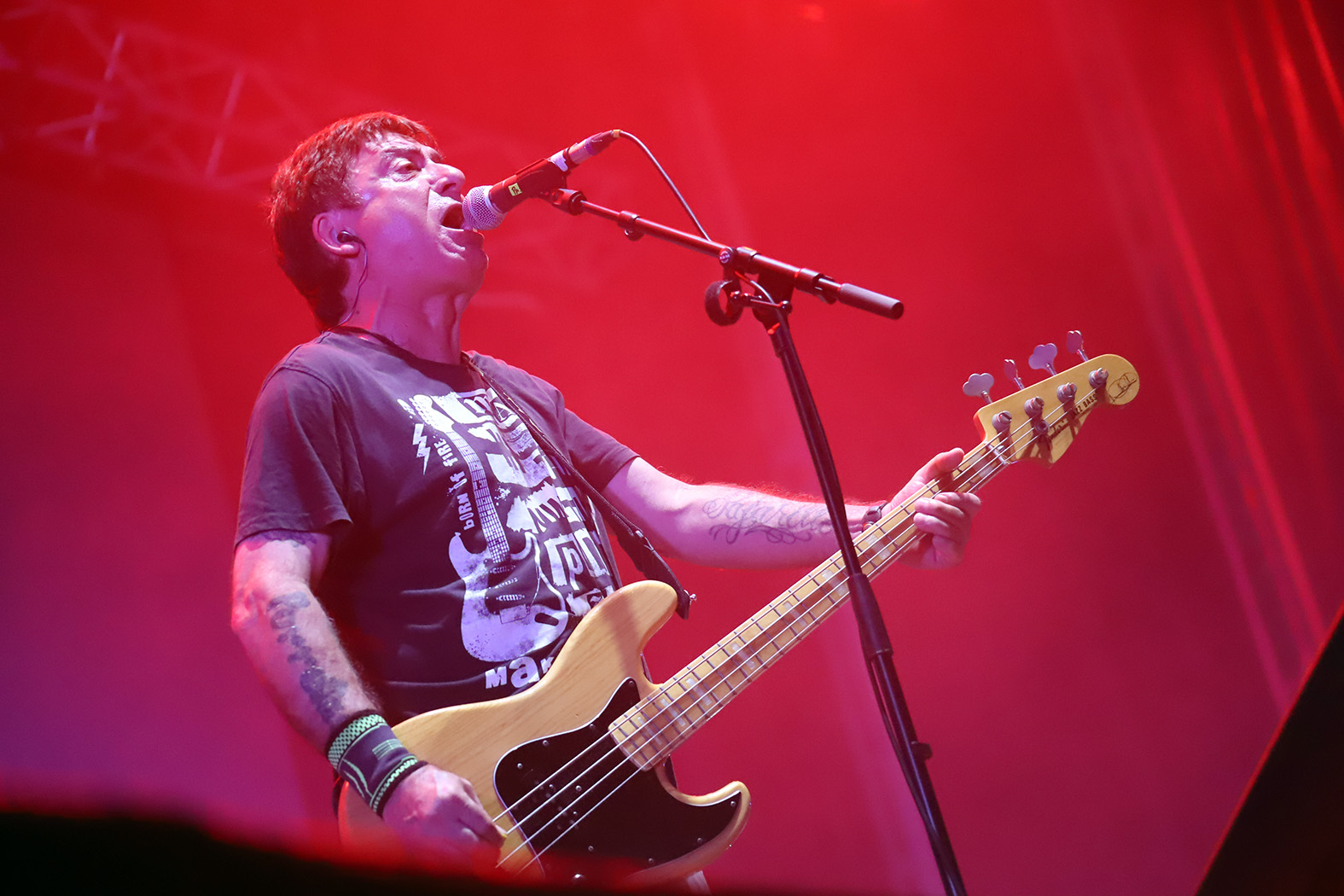 Como bien es conocido, eso de la meritocracia es uno de los grandes inventos que, como un calabobos, ha ido haciendo sesgo en el imaginario popular pero, en términos festivaleros, es de aplaudir cuando una banda currante va ‘progresando’ en aceptación, aforo y amplitud en los carteles festivaleros. Es el caso de Manifa que estuvieron en la fiesta de bienvenida en el Juergas de 2019, pero en el más reducido escenario del Paseo Marítimo. Ahora, con toda la grandeza escénica del principal de todo el festival, tuvieron el honor de abrir la veda con su punk de vieja escuela, desde Repélega en Portugalete y toda esa crudeza que se mueve entre la corrosión irónica de Evaristo y la teatralidad desbordante de El Noi del Sucre. Con una puesta en escena siempre colorista, hiperactiva y teatral y aprovechando que las fuerzas de los presentes estaban completamente intactas, mordieron rápido desde el arranque habitual de los últimos tiempos como sus “Asesinos de Rock and Roll”, pasando por “Bandera Negra”, “Dispara”, pasando por su “calvo” con el nombre de un partidox políticox tatuado en “Con El Gulag Se Vivía Mejor” y un toque al público con tirón de orejas a futboleros con eso de que «os movéis poco, con razón el Almería ha bajado a segunda». “Cuando Ya No Veas Más” recordaron que siempre se podrá rezar para que “Dios Salve Al Viña”, gritando con fuerza «¡La Pegatina, tortura y asesina!», incendiaria proclama teniendo en cuenta que tres horas más tarde se subirían al escenario. Emularon así a Juantxo Skalari, que fue el único que criticó la presencia de Loquillo en la edición de 2018. Tampoco faltaron las habituales “A Las Mariscadas”, “Cristales Rotos” o “Rebelión”.