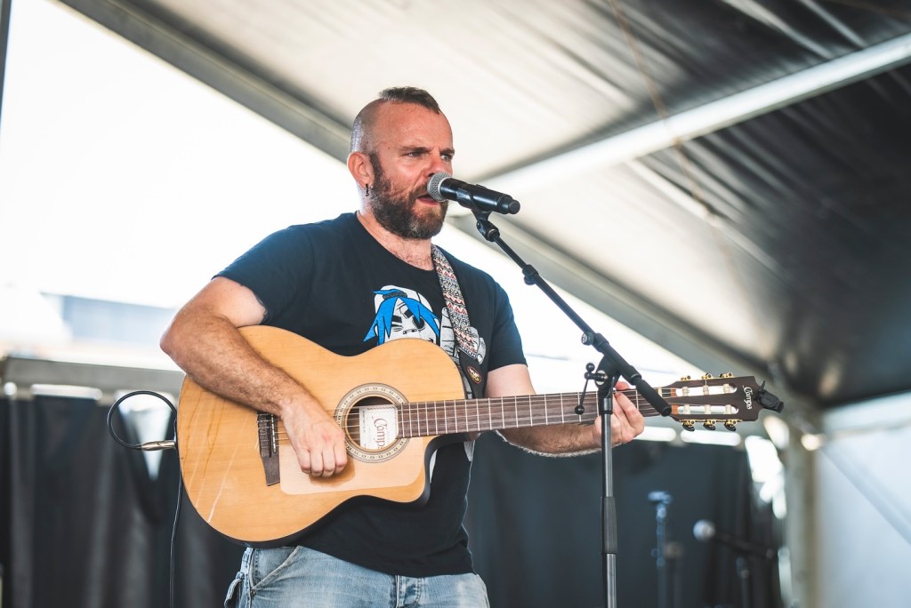 Las jóvenes Pubic Enemy, avaladas con el sello de calidad que tiene más que ganado su agencia de contratación El Garaje Producciones (Desakato, Hamlet, Mala Reputación, Pablo Senator…), tuvieron la misión de abrir la jornada musical de jueves desde el tempranero y calorífico escenario Agustico del Paseo Marítimo. Alex a la voz y guitarra, con años de experiencia a sus espaldas, Giovanna a la batería y segunda voz, Irene a la guitarra y Nidia al bajo conforman un cuarteto que, con su música, quieren denunciar las injusticias de las que son testigo, «soltar nuestra rabia al mundo y presentarnos como parte de unageneración dispuesta a demostrar que el punk sigue vivo». El testigo lo recogía después Guiu Cortés, esta vez como cabecera de su proyecto solista y no como El Niño De La Hipoteca, en cualquier caso, un habitual de The Juergas. Una cara más emocional más emocionales que las humorísticas o reivindicativas que con la banda, pero siempre bajo el denominador común de una ejecución preciosista y muy afinada. Damos testimonio de sus actuaciones con estas dos imágenes.