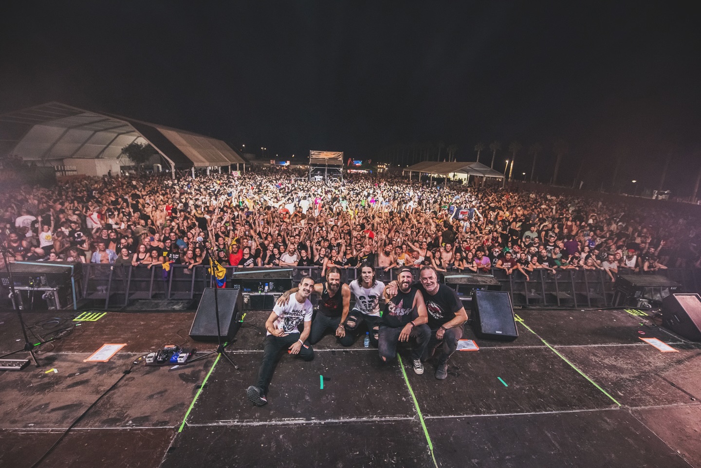 Skindred venía avalado por el brutal éxito de su Smile, su octavo disco, que se situó en el número dos de ventas en el Reino Unido y que recibió el apoyo de bandas tan contundentes como Metallica, Rage Against The Machine o Disturbed. Fueron cabeza de cartel el pasado mes de marzo en Wembley Arena y acumulan ‘soldout’ por todo el mundo. Para los jóvenes del lugar hay que apuntar que, si la han escuchado en algún tiktok, la canción “Nobody” es suya. Dejo por aquí foto de testimonio de su paso por The Juergas.