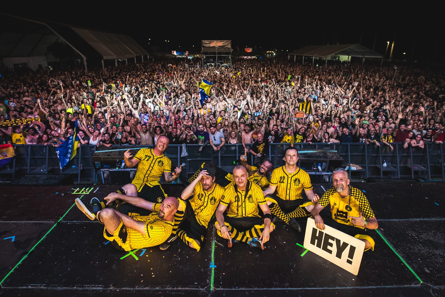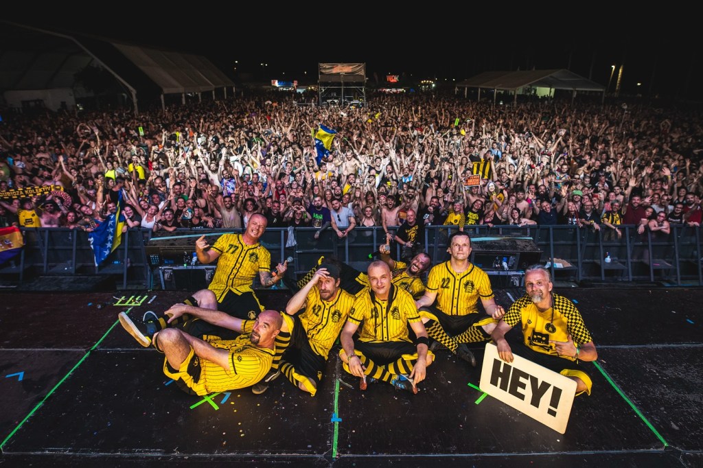 Con su habitual equipación deportiva amarilla y negra, los bosnios (aunque realmente sus integrantes son de varios países) Dubioza Kolektiv recogieron el testigo de Soziedad Alkohólika con el reto de que el nivel no decayese. Lo consiguieron, una vez más. Esta vez alentados por su candidatura a participar en Eurovisión y otra inmensa colección de kilómetros a sus espaldas. Solo por repasar de julio a Juergas…: República Checa, España, Alemania, Luxemburgo, Suiza, Eslovenia, de nuevo a Suiza, Montenegro, Bosnia Herzegovina, Polonia y Bulgaria el día antes de tocar en Adra. ¿Flipante, no? Pues todavía les queda un verano con Inglaterra, Italia, Polonia, Francia, Alemania, Eslovaquia, Rumania, de vuelta a España (en fechas de la Vuelta, además) y Croacia. Brutal lo suyo. ¿Y cuál es la fórmula para sus conciertos? Pues la misma que sus viajes, no hay descanso. El numeroso combo arranca siempre a morder desde el inicio. Una escalada de síncopas y diversión junto a melodías balcánicas hasta llegar a los toques electrónicos con una inmensa capa de humor, de coreografías según el caso, de cartelerías varias para hacerse entender y pasajes de rock, ska, dub y hip hop. “U.S.A.”, “Euro Song”, “Free.mp3”, “Rakija”, “No Escape” o “Balkan Funk” son éxitos festivaleros de pleno derecho.