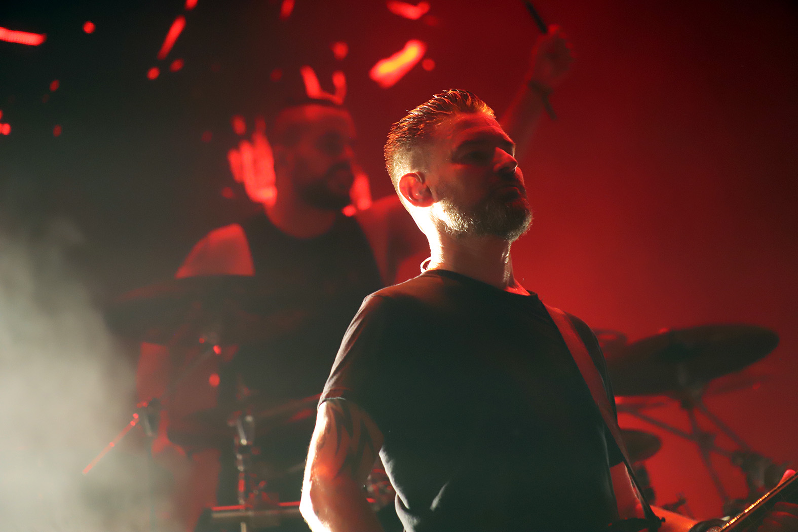 Soziedad Alkohólika sigue jugando en otra liga desde hace años. Por sonido, por carisma, por contundencia, por calidad en el directo, por lo invertido en luces, columnas de humo y de fuego, ahora también con vídeos específicos para cada tema y por un repertorio en el que ya da igual que inicien con temas menos populares o que los coreables y cantables sean los de (casi) siempre. No importa. A estas alturas puede que sea la banda que más he visto en directo a lo largo de los últimos veinticinco años (puede que se vaya acercando a la treintena, quizá Robe-Extremoduro y Hora Zulú se queden en la veintena) y no hay ni un solo concierto que me aburra o que no acabe satisfecho y convencido. Poca broma. Además, con nuevo batería, Mikel Gómez, que aportó energía fresca y solvencia contrastada. El único pero que puede decirse de la del pasado sábado en The Juergas es la pequeña demora que quizá provocara un recorte del repertorio, con pequeño fallo técnico en las primeras canciones incluido. Es una impresión, lo dimos todo e igual nos pareció corto. “Perra Vida”, “Nadie”, “Tiempos Oscuros”, el riff magnífico de “Niebla De Guerra” o la ya habitual “Política Del Miedo” atronaron en el primer tramo. Pero fue “Palomas y Buitres” la que activó el ‘click’ definitivo para la consabida fiesta de danzas, chanzas y cánticos. “La Aventura Del Saber”, “Ratas”, la más circunspecta “Buenos Momentos” o el salto vertical de “Peces Mutantes” continuaron con la brea. “No Quiero Participar” y esa catedral presidiendo el escenario, “Piedra Contra Tijera” o “Cuando Vale Nada” presagiaron un final donde esta vez sí se recuperó “Motxalo” antes del inamovible “Nos Vimos En Berlín”.