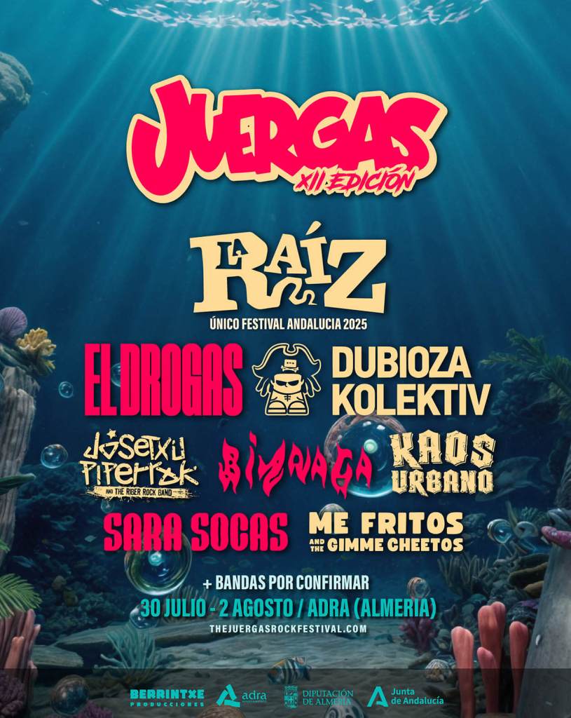 Si el viernes pasado os ofrecíamos casi al minuto la primera tanda de confirmaciones de The Juergas Rock Festival, este mañana se ha desvelado la guinda de un pastel todavía por completar. El conocido festival de rock de la ciudad de Adra, Almería, desvela unos días después de su primer avance, el que será su cabeza de cartel para su duodécima edición. Tras el reciente y esperado anuncio de la vuelta a los escenarios del renombrado grupo La Raíz, el festival Juergas Rock se desmarca del resto de festivales anunciando su confirmación con un teaser que sigue el hilo de la pieza audiovisual que usó el grupo para su regreso. No podía faltar The Juergas, donde los juerguistas vivieron su crecimiento imparable en los años 2014, 2016, 2017 y 2018. Con una botella como protagonista, se desvela la gran apuesta juerguista que se suma a siete bandas más, anunciadas el pasado viernes junto con la primera tanda de abonos ya agotada ante la gran expectación de la que será la décimo segunda edición. Os recuerdo por aquí la entrevista que les hice a La Raíz meses antes de que ofrecieran su concierto de despedida.