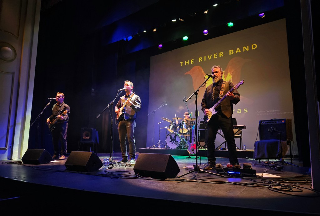 “Cuatro almas, cuatro músicos, cuatro maneras de vivir y una forma de expresar nuestros sentimientos”. Ese es el motor de The River Band, la rockera banda almeriense que anoche puso patas arriba el Teatro Apolo. No solo por haber colgado el cartel de ‘entradas agotadas’ sino por cómo el público tuvo que vivir la segunda parte del concierto de pie y bailando al ritmo del más genuino y auténtico rock and roll clásico. Era la presentación oficial de su segundo disco, ‘Mil maneras’, con el que han dado rápida continuidad a su estreno, ‘Debajo de un taburete’. Todo ello en el marco de la programación de temporada de invierno puesta en marcha y coordinada por el Área de Cultura, Tradiciones y Fiestas Mayores del Ayuntamiento de Almería.