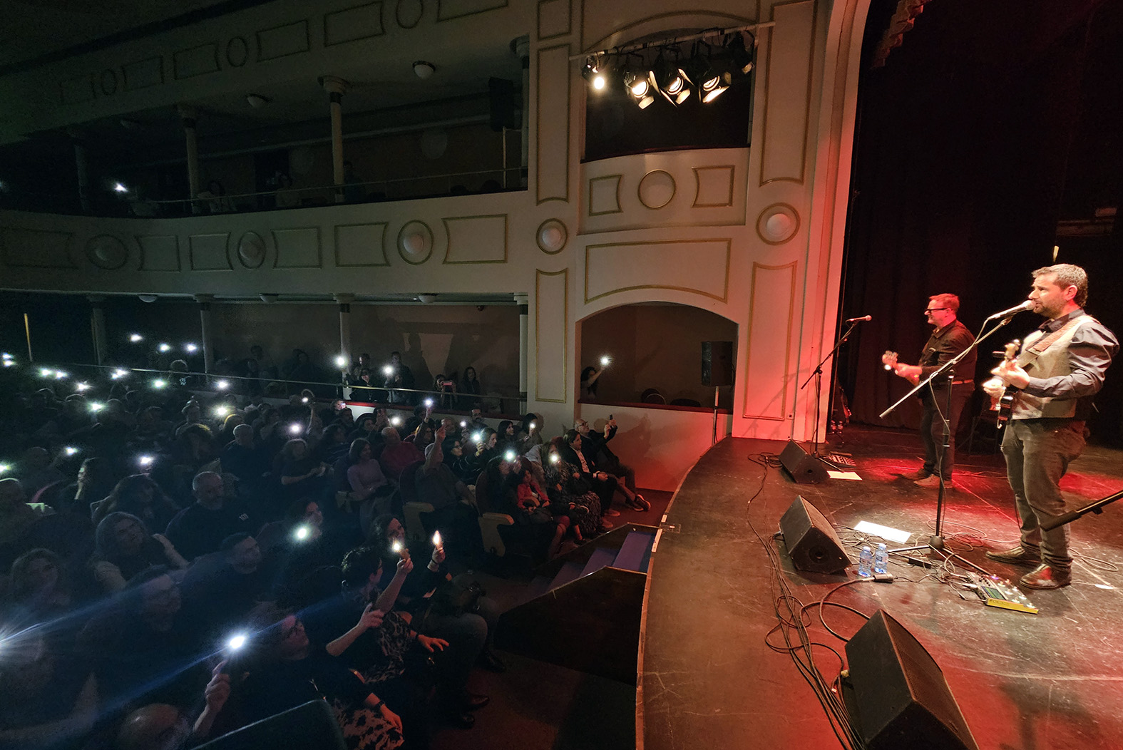 The River Band triunfó a lo grande anoche tanto con las canciones del primer disco como las del segundo, que incluyeron en su totalidad. Pero, para prueba de la pasta que están hechos los componentes del grupo, incluso se atrevieron a estrenar dos nuevos temas que irán en un venidero tercer disco. Fue precisamente ‘Sueño frío’, nueva, la que abrió la veda tras una intro instrumental muy afilada y el recitado de Alberto Barea. Se abrió así una senda de ‘Dados trucados’, de recuerdos al barco ‘Valbanera’ o a la pandemia con ‘Confinados’ (emocionante coda instrumental con el solo de guitarra) o el canto voraz a favor del medioambiente de ‘Recuerdo y olvido’, con enriquecedores cambios de compases en la batería.