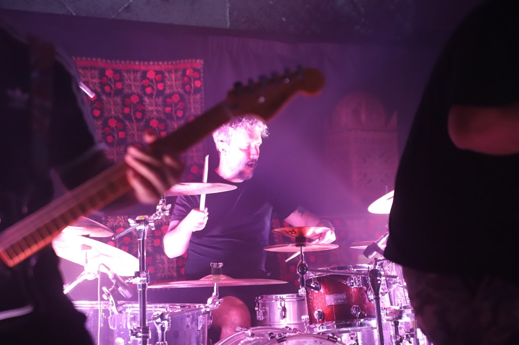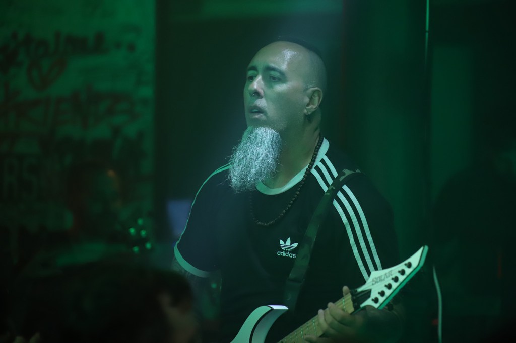 A estas alturas cualquier persona que haya rondado las calles de este lugar sabrá que Hora Zulú es uno de ‘mis intocables’. Por motivos personales que no vienen al caso y por otros numerosos que compartiremos a buen seguro. Quien lo probó lo sabe, como el amor, y quien la lleva la entiende, como los demonios del coco. Creo que es imposible no sentir fuego con algunos riffs y solos de Paco Luque, como tampoco las partes metaleras más contundentes y pautadas de manos de un excelente Javi Cordovilla (es maravilloso escuchar cada pequeño aderezo que aporta a las canciones, escuchándose con una nitidez clarificadora), ni con los versos y o la interpretación aparentemente despreocupada pero siempre con gran nivel de exigencia en cuanto a concentración por parte de Aitor Velázquez. El cuarteto lo completa de un tiempo a esta parte Manuel Romero al bajo al que, por cierto –y como es lógico- le vi y se le va más integrado que en aquel bolo en el que le vi debutar en la Copera de Granada a finales de 2021.