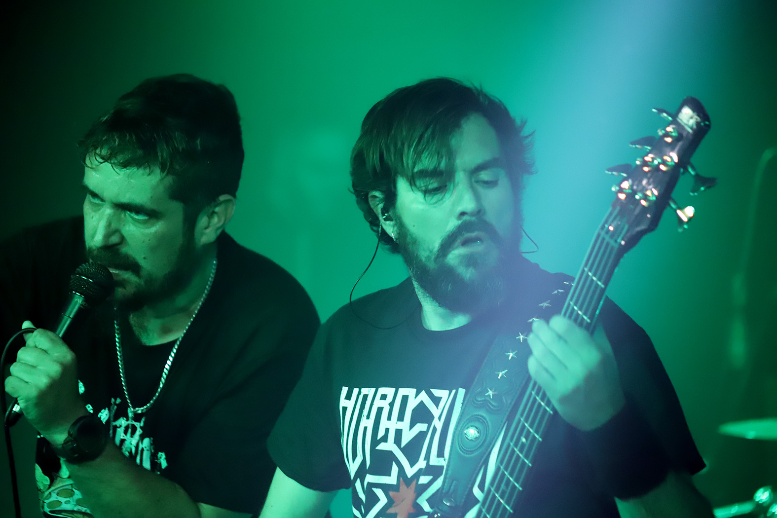 A estas alturas cualquier persona que haya rondado las calles de este lugar sabrá que Hora Zulú es uno de ‘mis intocables’. Por motivos personales que no vienen al caso y por otros numerosos que compartiremos a buen seguro. Quien lo probó lo sabe, como el amor, y quien la lleva la entiende, como los demonios del coco. Creo que es imposible no sentir fuego con algunos riffs y solos de Paco Luque, como tampoco las partes metaleras más contundentes y pautadas de manos de un excelente Javi Cordovilla (es maravilloso escuchar cada pequeño aderezo que aporta a las canciones, escuchándose con una nitidez clarificadora), ni con los versos y o la interpretación aparentemente despreocupada pero siempre con gran nivel de exigencia en cuanto a concentración por parte de Aitor Velázquez. El cuarteto lo completa de un tiempo a esta parte Manuel Romero al bajo al que, por cierto –y como es lógico- le vi y se le va más integrado que en aquel bolo en el que le vi debutar en la Copera de Granada a finales de 2021.