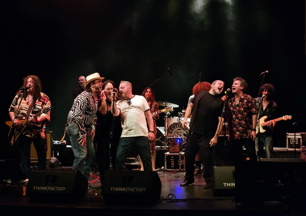 Cuando a un músico no le queda nada por demostrar, porque ya todos conocen su maestría y solvencia, solo queda disfrutar de su estilo propio y sus facultades cada vez que se sube a un escenario. Igual que ocurre con las grandes voces del lírico o los grandes solistas de la música clásica, Santi Campillo se ha ganado por derecho propio ser considerado un auténtico ‘guitar hero’ del mundo del rock y el blues por sus sobrada habilidad con las cuerdas. El que fuera fundador de M-Clan presentaba su disco ‘Santi Campillo & Los Aliados de la Noche’ y para ello, como ocurre en la versión de estudio, se acompañó de una importante corte de artistas invitados. Por eso, desde el principio, lo de ayer era un más que anunciado acto de celebración para el que, además, se iba a rodear de varios invitados y colegas de la escena como Javier Andreu de La Frontera, Sherpa (ex Barón Rojo), Al Dual, Pike Cavalero junto a Mila Rodríguez y Diego Cruz. Todo ello presentado por Jutxa Ródenas. Pero no fueron los únicos, porque en la banda de Santi también tuvieron su momento solista la bajista de la banda –en la formación de Joe Cocker durante trece años- Oneida James, el vocalista Francis Sarabia, el guitarrista y cantante Fede Espinosa y el saxofonista Ginés Soto. La banda base se completaba con Joaquín Bermejo ‘Mini Drums’ en la batería, Quino Lucas en los teclados y Juanito Alarcón en la guitarra. La cita formaba parte de la programación de primavera puesta en marcha y coordinada por el Área de Cultura, Tradiciones y Fiestas Mayores del Ayuntamiento de Almería. (FOTOS: José Antonio Holgado y propias)