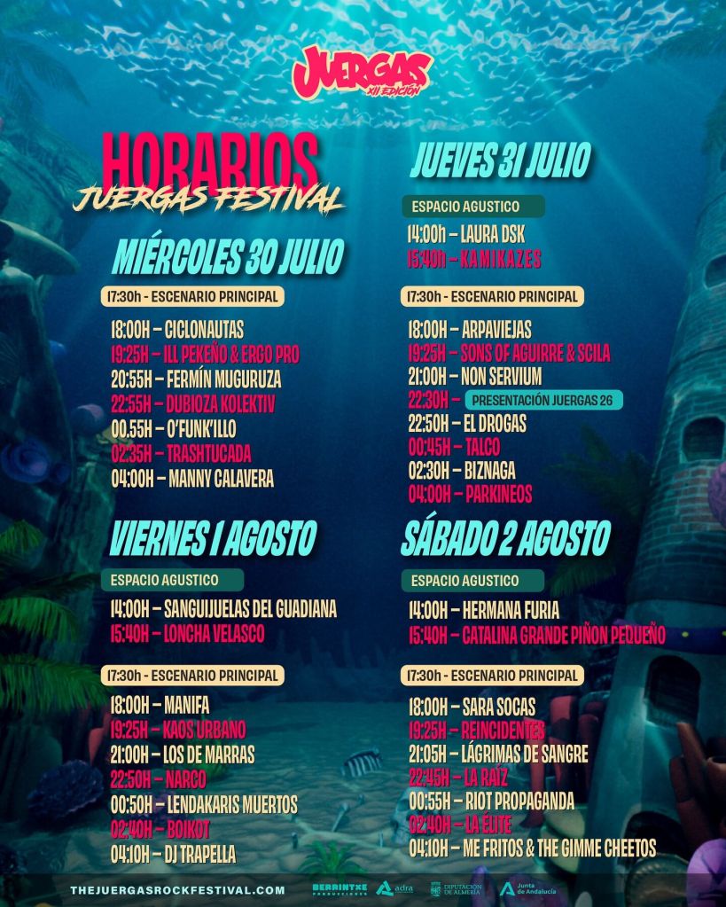 Horarios XII The Juergas Rock Festival 2025, del 30 de julio al 2 de agosto