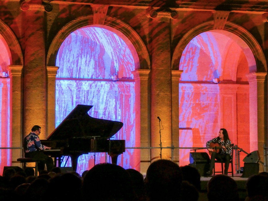 Un magnífico broche de oro para un 58º Festival de Flamenco y Danza de Almería que alzó el telón el 26 de junio y que ha venido desarrollando desde entonces con más de una decena de actividades durante cuatro fines de semana. Michel Camilo & Tomatito volvían a Almería donde, el origen manda, siempre se les ha tenido un cariño especial a su fusión. Pero no solo por Tomatito, porque lo cierto es que el público almeriense ha sabido entender la magistral forma de interpretar y navegar por la música de Michel Camilo, feliz siempre cuando visita ‘la casa’ del guitarrista almeriense. Para el concierto de anoche en el Claustro de la Catedral las entradas estaban agotadas desde hacía más de dos semanas. Adelante. (FOTOS: Patricia Domínguez – Rojo Sostenido)