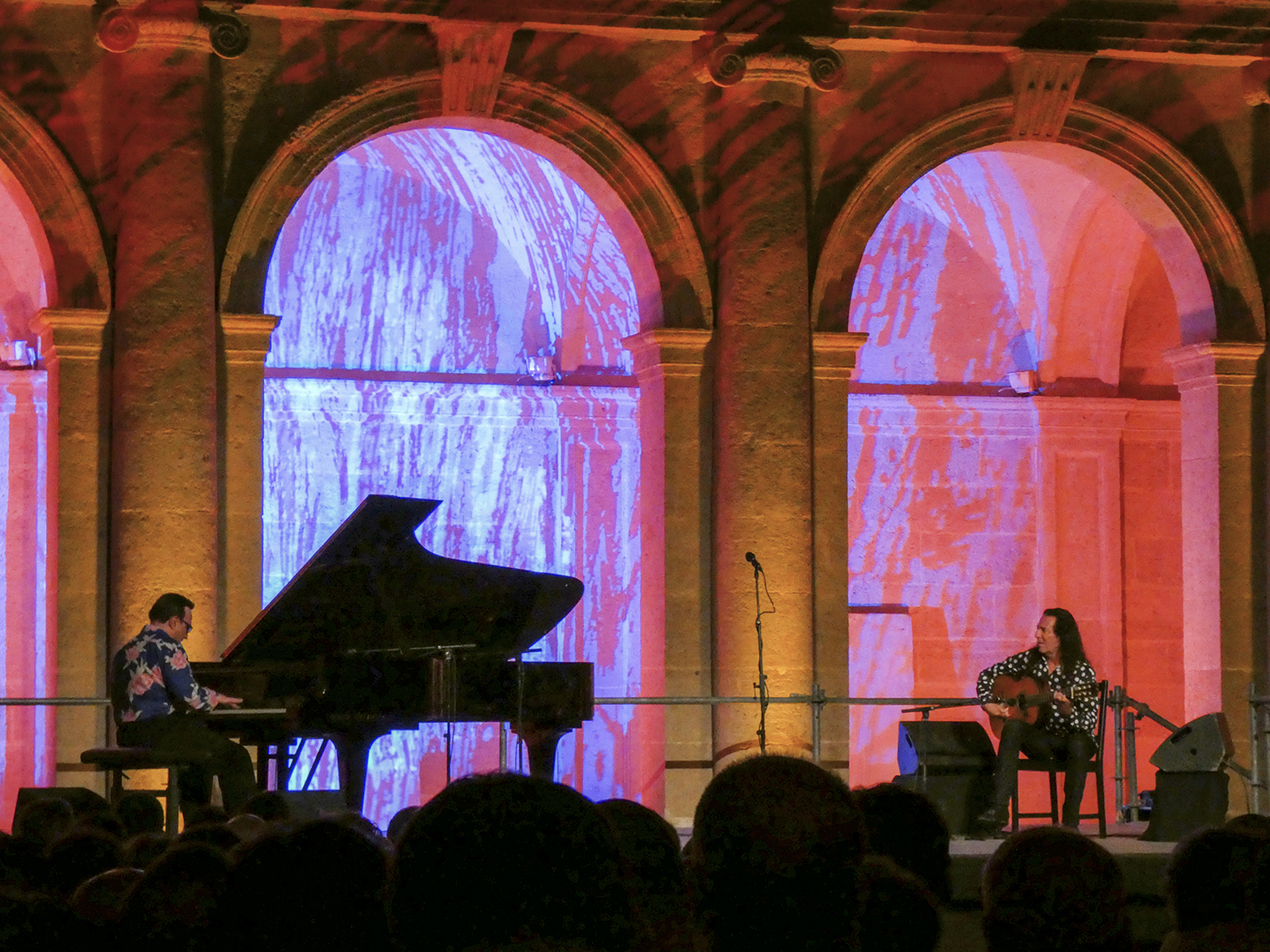 Un magnífico broche de oro para un 58º Festival de Flamenco y Danza de Almería que alzó el telón el 26 de junio y que ha venido desarrollando desde entonces con más de una decena de actividades durante cuatro fines de semana. Michel Camilo & Tomatito volvían a Almería donde, el origen manda, siempre se les ha tenido un cariño especial a su fusión. Pero no solo por Tomatito, porque lo cierto es que el público almeriense ha sabido entender la magistral forma de interpretar y navegar por la música de Michel Camilo, feliz siempre cuando visita ‘la casa’ del guitarrista almeriense. Para el concierto de anoche en el Claustro de la Catedral las entradas estaban agotadas desde hacía más de dos semanas. Adelante. (FOTOS: Patricia Domínguez – Rojo Sostenido)