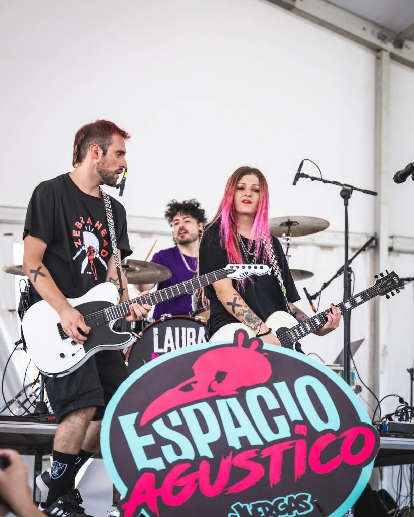 Punk rock, el pop punk, ska-punk… según la necesidad expresiva. La de Laura DSK es la historia clásica de amor por la música. Así, tras cerrarse el proyecto de Dskarrila, Laura emprendió un camino en solitario que combina todas sus necesidades y que fue la encargada de abrir los tres días de escenario Agustico, con actuaciones a las 14.00 horas y 15.40 horas… Tremendo desafío para los calores que, sin embargo, siempre encuentra respuesta. Con un mensaje feminista (que no capitaliza la actuación en cualquier caso), Laura DSK ofreció mucho de su No Se Vende Este Álbum y alguno de los singles que están preludiando su próxima entrega en 2026. Los compañeros de viaje fueron los madrileños Kamikazes. De la escuela nacida de barrios como Vallekas o Carabanchel, el grupo enfila su segundo lustro de vida con buenas dosis de rock que vienen despachando poco a poco como “Pura Dinamita” en salas y festivales –curtiéndose deshoras y escenarios menores-. “El Ojo Del Huracán”, “Lobos” o “Mi Tormenta” son buenos temas en los que iniciarse con ellos. Damos testimonio de sus actuaciones con estas dos imágenes.