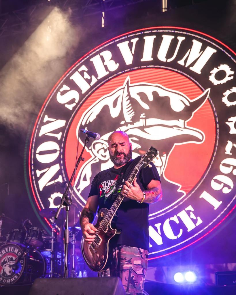 Máximo exponente del brutal oi en castellano, Non Servium descerraja pura potencia en cada escenario al que se suben, donde hacer alardes de lo que son sus señas de identidad que han hecho crecer exponencialmente el número de fieles; voces rudas, potencia descomunal en los coros, melodías de guitarra que se presentan de inicio y cabalgan a lo largo del tema a lomos de una batería hardcoreta y una importante dosis de rabia y hiel en cada uno de los textos, sin olvidar algún guiño emocional que completa la gama. Hace tiempo que han ganado la batalla del debate en torno al ‘purismo’ del género a base de música. Poco se puede añadir que no sepamos ya. No hacen prisioneros. Van a la yugular con la lija rozando fuerte. Y, por eso, cada concierto es una celebración para su amplia y fiel legión de seguidores, que viven su música con una pasión por encima de la media, con una salvaguarda de autenticidad que se deja sentir en decenas de tatuajes, botas, estilos y bengalas. “Ratas”, “Bronca” o “Nuestra Lucha” son declaraciones de intenciones. Atronadores como siempre pero con corazón entre tanta bilis y rudeza, no faltó la poderosa “ACAB”, la invocación a “El Espíritu del Oi”, la sentida “Animal” o cerrando con “Seguimos Siendo”. Y doy fe porque en el final de la actuación me metí en el centro de la acción.