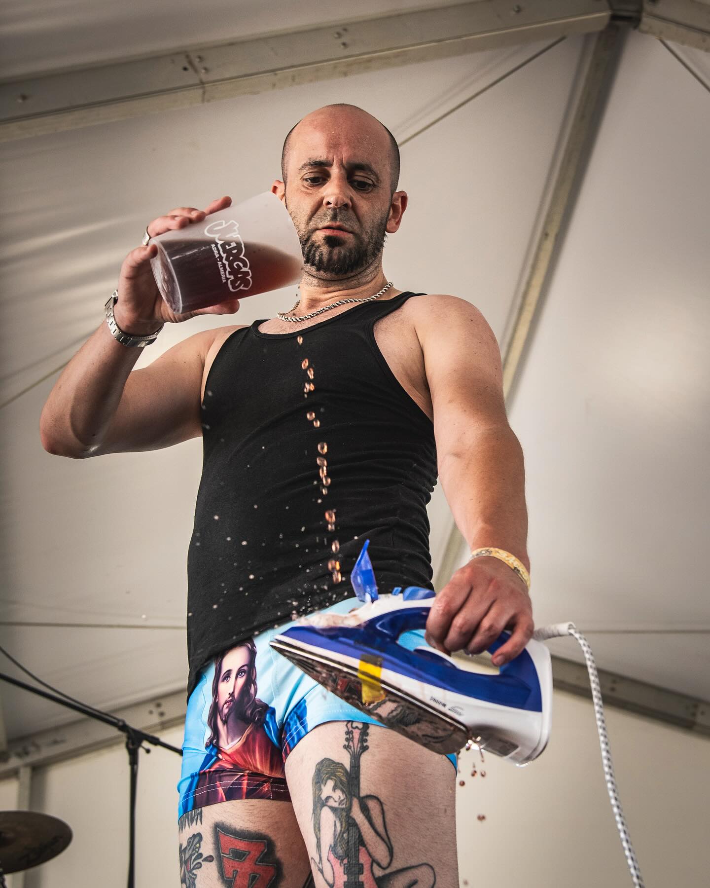 Cuando haces un sonido como el que descerraja La Élite tienes muchas papeletas para que en un festival variado y generalista como el Juergas te pongan en la hora ‘destroyer’. Aunque disfruté más la pureza de su Nuevo Punk, donde venían a conjuntar una virulencia punk de la vieja escuela con una capa de electrónica que va de las cajas de ritmos retro a los teclados más elementales que suena abrasivo y bakala, “Escaleras Al Cielo” y “Directos Al Infierno” –lo que viene siendo la traducción de los hímnicos temas de Led Zeppelin y AC/DC, también tienen enjundia para seguir teniéndoles fe… y seguir con mi deuda en rojo con La Élite, que hace del ‘feísmo’ algo realmente divertido y bailable, haciendo que sonidos, registros vocales que podría tener cualquier grupo de Oi, o las rudas maneras de unos Non Servium o Kaos Urbano, tengan en ellos una fina capa de diversión alocada con hechuras maquinetas ‘literales’, ya que alguna de las melodías principales de algunos cortes son pura esencia.