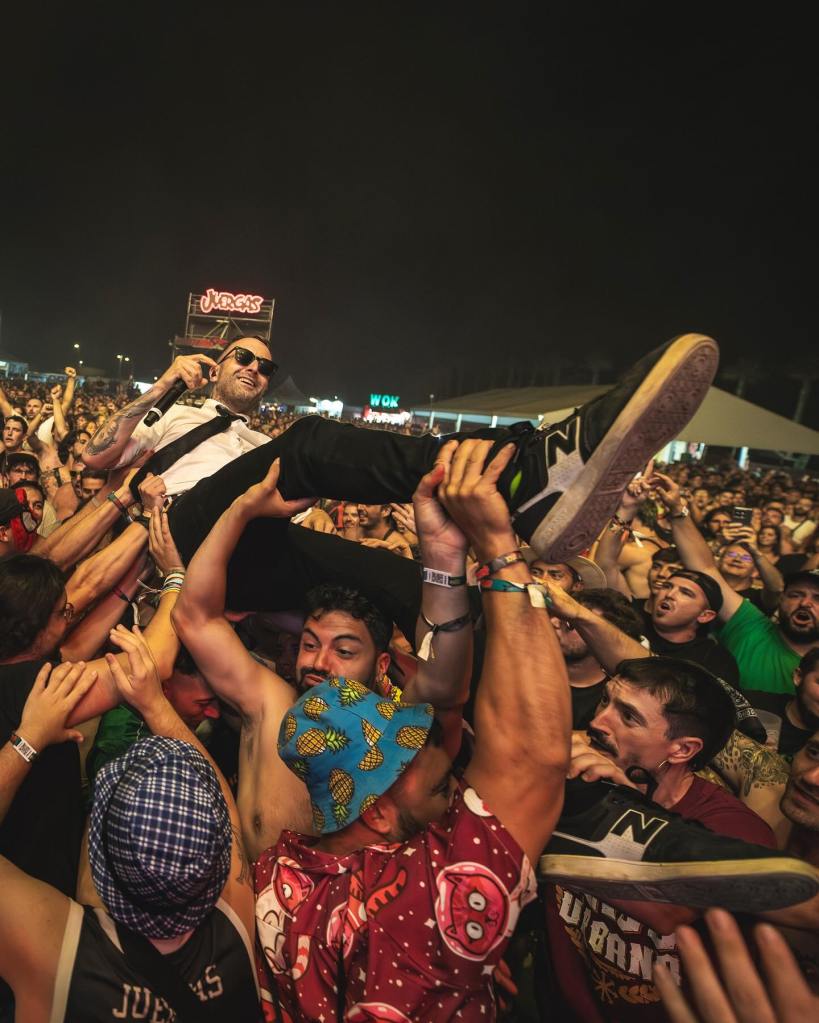 Desde hace muchos años, apostar por Reincidentes en un festival es garantía de fiabilidad en cuanto a cantidad de público. Tampoco podemos dudar a estas alturas de su prestancia musical pero, como en todo en la vida, hay tardes brillantes y excelsas y hay otras que, por los motivos que sean, no se termina de ‘conectar’. Quizá esta fuera una de las del segundo tipo aunque asumo que el problema pudiera ser mío debido al proceso febril comentado al inicio. Después de haberles visto más de 20 veces se agradece la intención de ir salpicando temas recientes entres los clásicos esperados y los que entran en rotación. Abrieron con la apropiada “Yaveh Se Esconde Entre Las Rejas” (más del 50% de las bandas hizo gala de apoyo al pueblo palestina de forma más o menos explícita) y siguieron con temas como “Un Día Más”, “La Historia Se Repite”, “Aprendiendo a Luchar” o “La Republicana”. Tras ellas, en el eje central, sacaron los temas más nuevos: “Rebelión” –con su doble naturaleza-, “Cultura Contra Basura” o “Los Hijos De La Calle”, que compuso y cantaron en su día con Albertucho. En la escalada final, todavía quedaban las cortas, directas y festivas de “Rip Rap”, “Cucaracha Blanca” (en su versión original, sin el ron con limón y la fumada), el fandango de El Cabrero previo de “Andalucía Entera” y las esperadas “Vicio”, “Ay, Dolores” y “Jartos de Aguantar”, donde salió a echarse un cante el buen amigo Sergi de Terral.