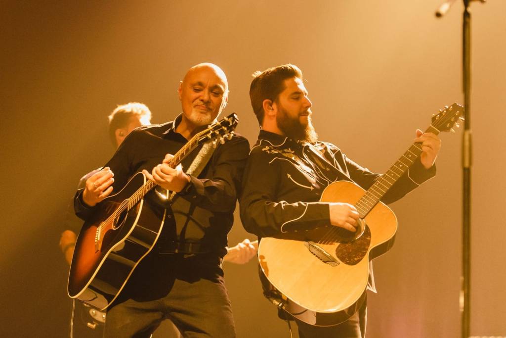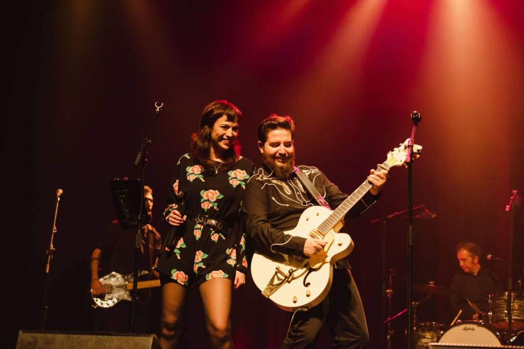 El viaje por el repertorio, como avanzaba, tiene hechuras y poso de ‘grandes éxitos’ y ofrece una elogiable variedad en las ambientaciones y texturas de sus canciones. Encontramos guitarras acústicas y eléctricas de doce cuerdas, armonías vocales muy cuidadas y trabajadas y un regusto claro a la costa oeste en las melódicas “A los pies de la Alhambra”, que ayer bordó en vivo Nat Simons, o “Si quieres que nos conozcamos mejor”. Fue un gusto disfrutar también de Gabriel Sopeña (Mejor solista en los Premios de la Música Aragonesa 2025) y su sensibilidad en “Si no es contigo”.