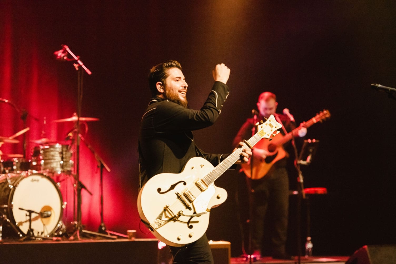 El viaje por el repertorio, como avanzaba, tiene hechuras y poso de ‘grandes éxitos’ y ofrece una elogiable variedad en las ambientaciones y texturas de sus canciones. Encontramos guitarras acústicas y eléctricas de doce cuerdas, armonías vocales muy cuidadas y trabajadas y un regusto claro a la costa oeste en las melódicas “A los pies de la Alhambra”, que ayer bordó en vivo Nat Simons, o “Si quieres que nos conozcamos mejor”. Fue un gusto disfrutar también de Gabriel Sopeña (Mejor solista en los Premios de la Música Aragonesa 2025) y su sensibilidad en “Si no es contigo”.