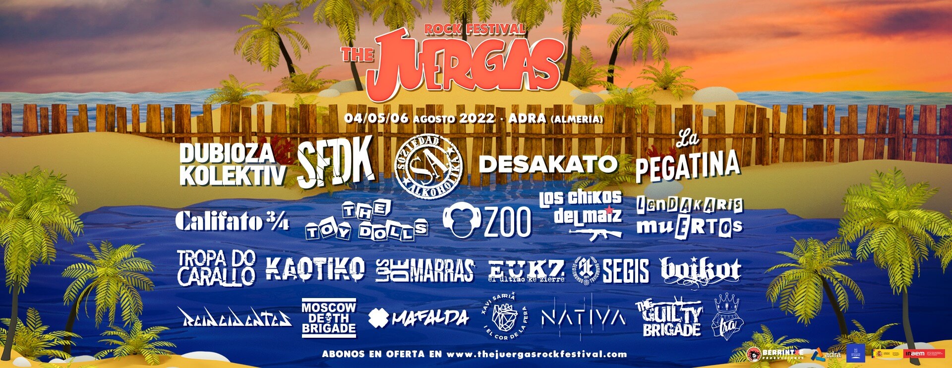 Como todos los festivales del país, The Juergas Rock afrontaba con la ilusión del que piensa “ahora sí que sí” la llegada de una nueva edición ‘normalizada’. El festival de Adra, que hemos cubierto en todas y cada una de sus ediciones, desde 2013 hasta 2019, regresa este 2022, del 4 al 6 de agosto, con un cartel directo y al grano: 23 bandas de punk rock, rap, metal y electrónica para recuperar todas esas sensaciones que tan bien habían logrado afianzar. Así, tras una serie de conciertos el pasado verano, la organización no se hizo de rogar demasiado y dio por cerrado en marzo el cartel para la que será su octava edición ‘completa’. Si no hay imprevistos, RockSesión volverá a estar un año más cubriendo un festival que hemos tenido la suerte de ver crecer cada año, en el que incluso hemos trabajado durante un par de ediciones y que además tenemos el gusto personal de que sea en un pueblo de nuestra provincia. Cada cual tendrá sus preferencias y cartel a medida, pero hay que reconocer que les ha quedado una nómina de bandas de lo más variado. Ya están los horarios para que cada cual programe sus descansos y sus tempos. Como es tradición también, os recuerdo la playlist recomendada para ir ultimando. Está organizada con una canción por banda en el primer bloque y, a continuación, bloques de cuatro temas de cada una de ellas. Nos vemos en Adra del 4 al 6 de agosto.