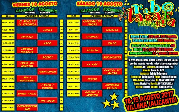 Rabolagartija Festival 2017. Playlist y horarios